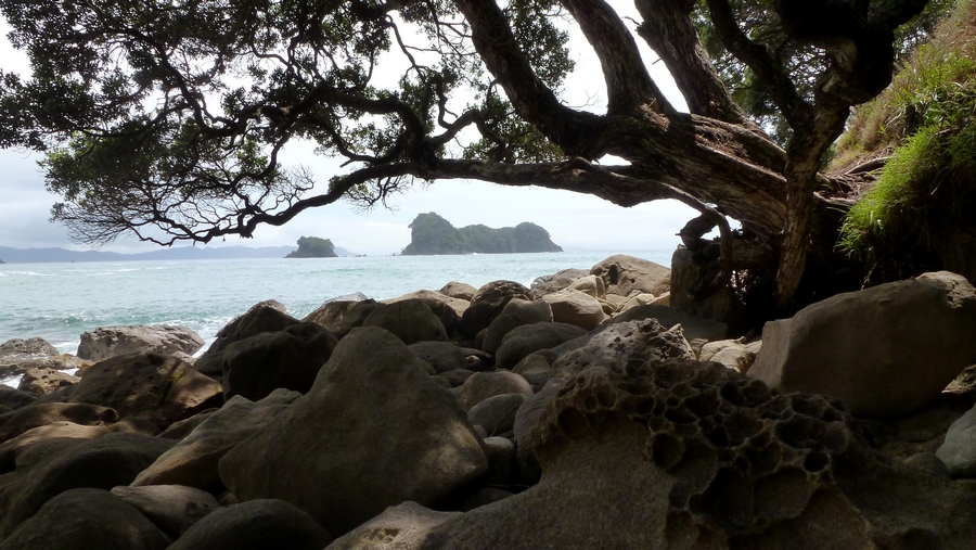 | Un peu plus loin le long de la cote, en chemin vers Cathedral cove... |