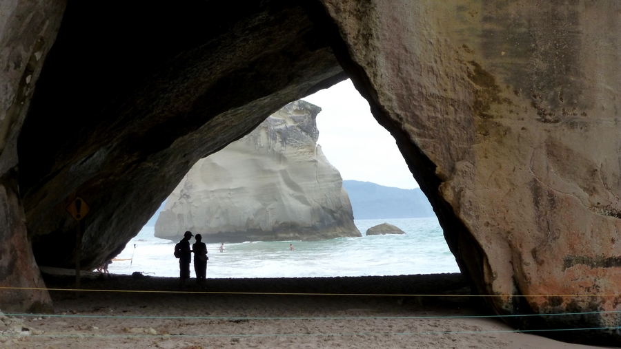 L'arche de Cathedral cove, qui donne accès derrière à une autre plage. |