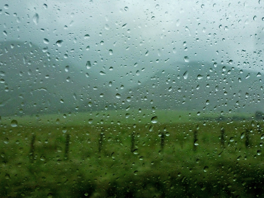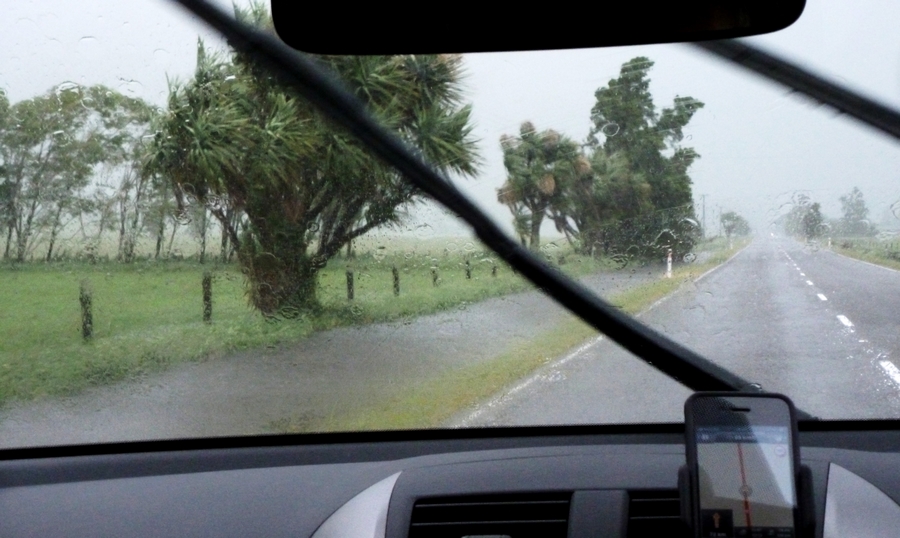| La route continue de longer la cote et descend vers le sud. La pluie est vraiment violente, et tout le paysage n'est qu'eau, en haut, en bas, partout... |