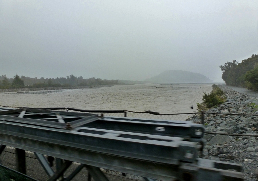 La cote ouest de l'ile sude la Nouvelle Zélande, c'est entre 7 000 et 15 000mm de précipitations par an. Autant dire qu'il faut miser sur de la pluie... Ca ne rate pas, avec une journée très humide, une bonne pluie presque du matin au soir, seule l'arrivée à Fox Glacier en fin de journée se faisant sous un tout petit crachin. |