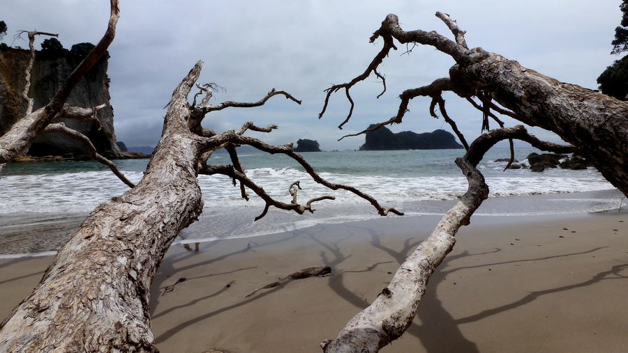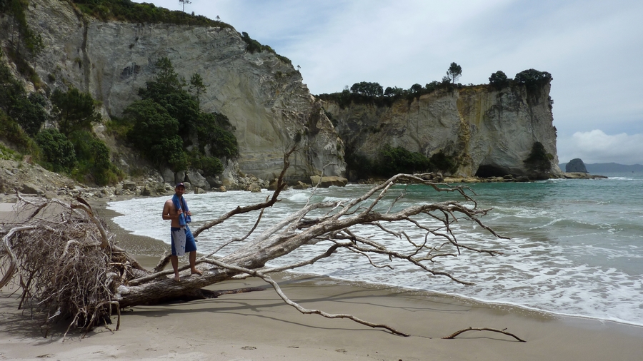 La matinée se termine, et le temps vire même carrement au beau fixe, c'est parfait ! Un temps superbe contre toute attente ! Le reste de la journée sera tranquille : balade le long de la cote, les plages autour de Cathedral cove... |