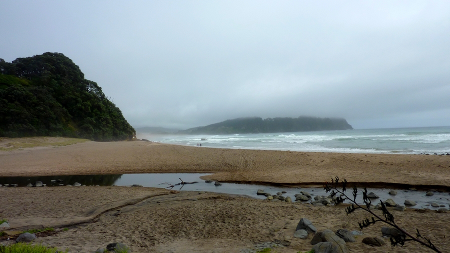 Lever au petit matin, avec la très agréable surprise de voir que la pluie a disparu. La brume matinale est superbe. Pas de route aujourd'hui (2 nuits réservée au camping de Whitianga), ça laisse une journée complète pour profiter des environs et de cette partie Ouest de la péninsule de Coromandel. Pas de temps à perdre, si la pluie n'est pas là, c'est le bon moment pour se mettre en route vers Hot water beach, qui est située à quelques kilomètres de là. La marée est basse vers 9h et c'est le meilleur moment pour en profiter... |