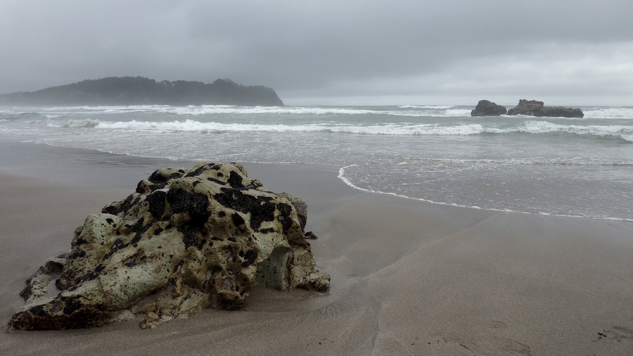 Après-midi repos sur cette même plage de cathedral cove, face à ce curieux rocher creusé par les vagues. La couleur de l'océan est magnifique, et avec quelques vagues par dessus, c'est vraiment la journée idéale pour profiter de la plage. |