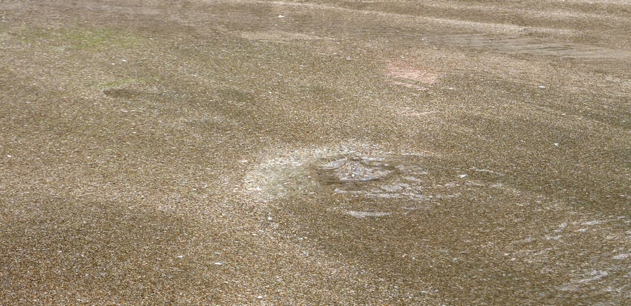 A certains endroits, l'eau qui jaillit spontanément du sable est carrément bouillante, il faut faire attention où on met les pieds... |